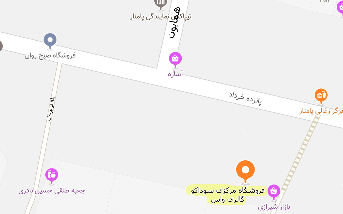 خیابان 15 خرداد روبروی پامنار پاساژ شیرازی فروشگاه مرکزی سوداکو پلاک 38، گالری واس